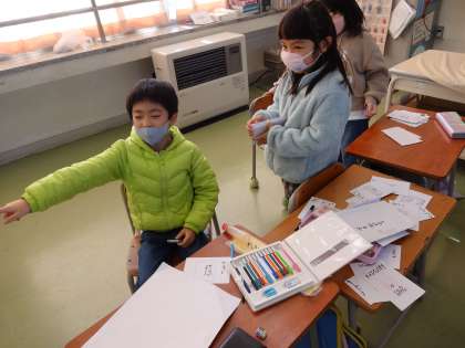 「ものの名まえ」の学習での知識を深めるために、物の名前を集めてお店やさんごっこをします。