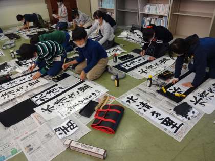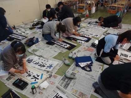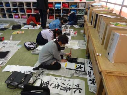 今週の書き初め練習は、床の上で書きました。一人一人が気を付けることを意識して、先週より上達するように頑張りました。