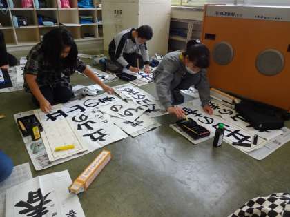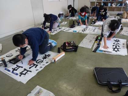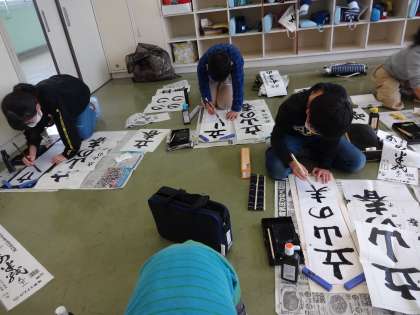 今日は、床の上で書き初め練習をしました。「の」「春」を書くのが苦手な子供がいたので、一文字ずつ練習をしてから、「立山の春」の4文字を書きました。