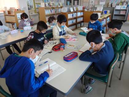 教科書で「やなせたかし」の伝記を学習した子供たちは、図書室で、自分が読みたい人物の伝記を選びました。それを読み、出来事を書き取りました。