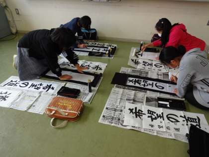 学習室に新聞紙を広げ、床の上で書き初め練習をしました。文字を書くときの留意点を意識して、丁寧に書きました。技能が高まっています。冬休みには、練習を積み重ね、さらにレベルアップを目指してほしいと思います。