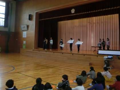 盛り上げる演出をしたり、はきはきと全校児童に伝えたりしている委員会の子供たちでした。