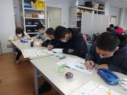 一度に全員が製作ができないので、待ち時間には控え室で学習や読書をしました。