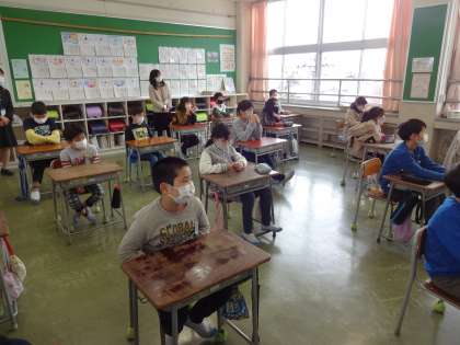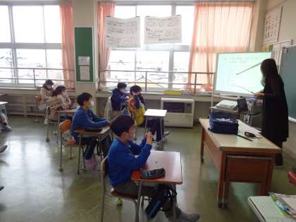 2限の2年生に続き、3限は4年生の子供たちに、中国出身の富山国際交流員が、中国の紹介をしてくださいました。