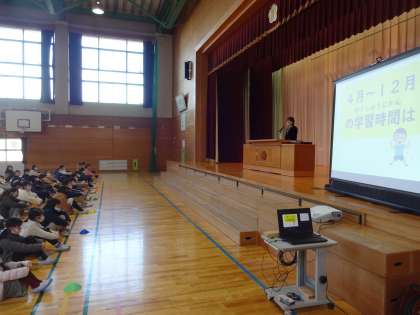 校長先生は、今学期各学年が頑張ったことを紹介されました。また、学習規律の大切さなども話されました。