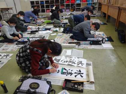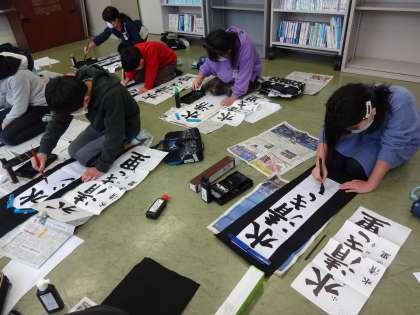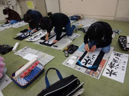 学校で一生懸命に練習してきた子供たち。家でもきっと練習を頑張ってきたことでしょう。「水清き里」を書きました。