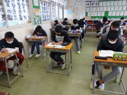 中学校生活や将来の夢についてスピーチしている英語を聞いて、分かったことや気付いたことをメモしています。リスニング学習をしています。