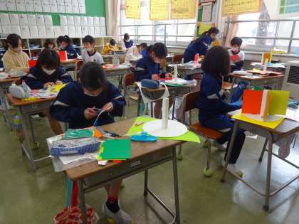 「くるくるランド」の学習です。2時間、夢中になって作り続けました。子供たちの創作活動は、来週も続きます。