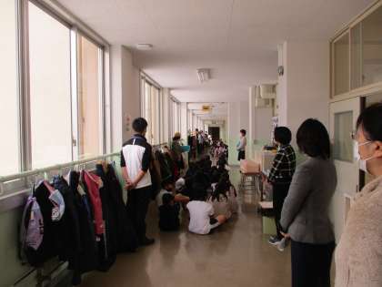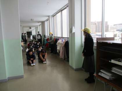 その後、さらに津波が起きた想定でサイレン音を鳴らし、2階にいる子供たちは、3階廊下に避難しました。