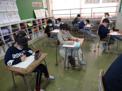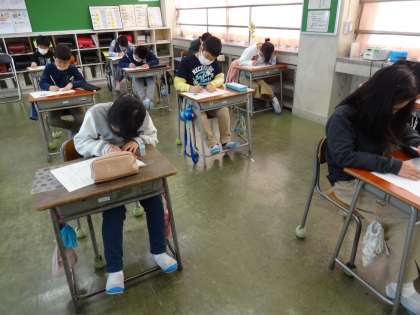 漢字にチャレンジのテストをしました。練習した成果を発揮できるように、集中して取り組みました。
