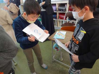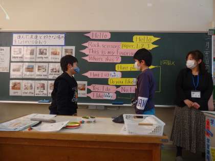 子供たちの学習意欲は高く、予め作成しておいたカードを活用しながら、積極的にペアを見つけ自分の好きな場所を英会話で伝えました。クイズ形式なので、楽しく取り組むことができました。