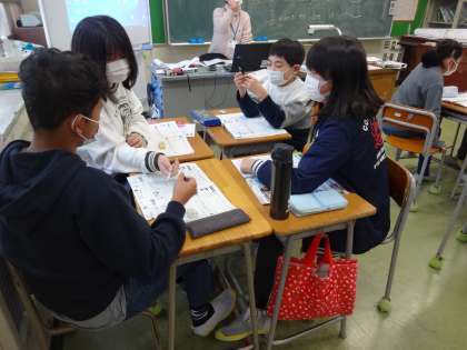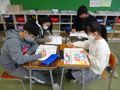 中学校で入りたい部活動と、将来なりたい職業について、班の友達にインタビューして、分かったことをテキストブックに書きました。もちろん英語で話しました。