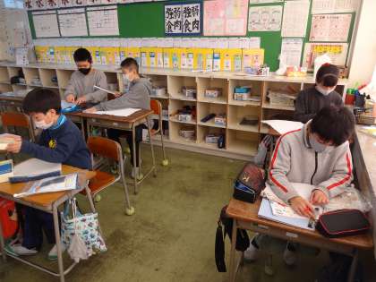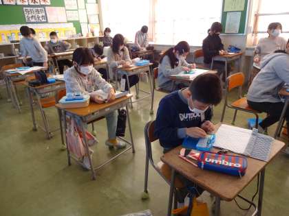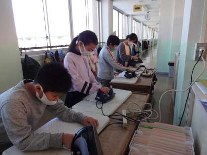5年生は、家庭科の授業で、「ウォールポケット」を製作しています。