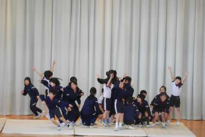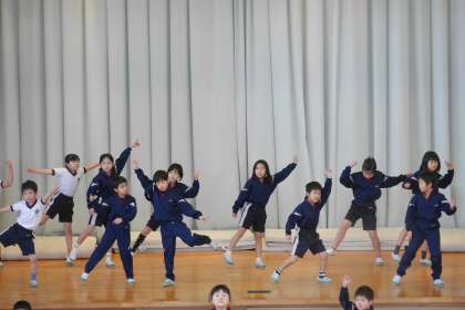 「練習の成果を発揮し、全員で協力してがんばろう」を目当てにして、台詞の練習、跳び箱運動、マット運動、ダンスを練習してきました。最初はなかなかうまくできませんでしたが、休み時間に練習したり、互いに声を掛け合ったりして、一致団結し、乗り越えることができました。