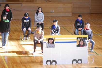 学習発表会で6年間の自分たちの成長を振り返った6年生。