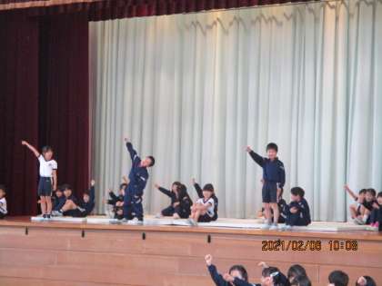 2・3年生でのミニ学習発表会。子供たちは、今までの練習の成果を存分に発揮して、最高のパフォーマンスを見せました。