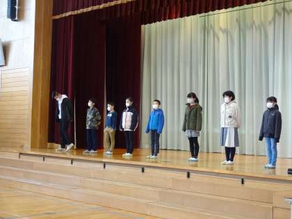 運営委員会の子供たちが、全校児童に明るく元気な挨拶をしようと呼びかけました。