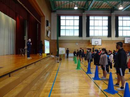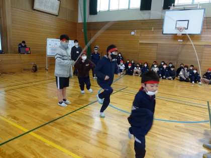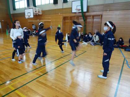 午後1時15分から、色団対抗のなかよし縄跳び大会を行いました。