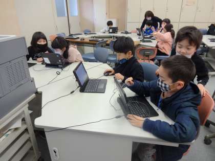 今日は、1年生が、コンピュータの操作の仕方や文字入力の仕方を教わりました。目を輝かせてコンピュータに向かい、活動しました。