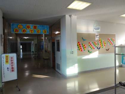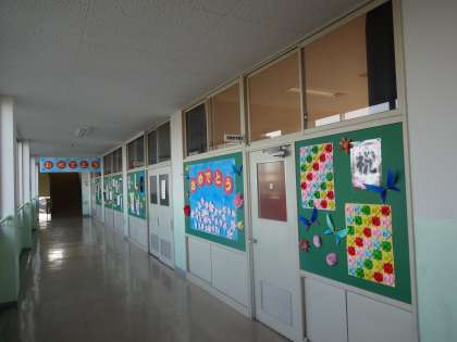 今日から3月。児童玄関、2・3階廊下、階段の踊り場等の掲示が、卒業お祝い掲示に変わりました。