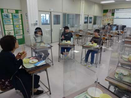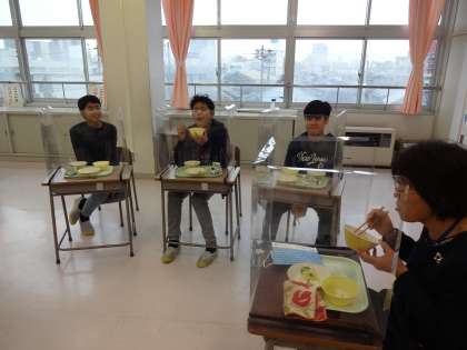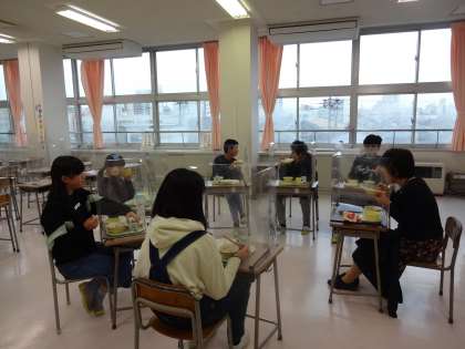 「今だから言える笑い話」「中学校に向けて気になること」など、お題に合わせて楽しく会話しながら給食を食べました。