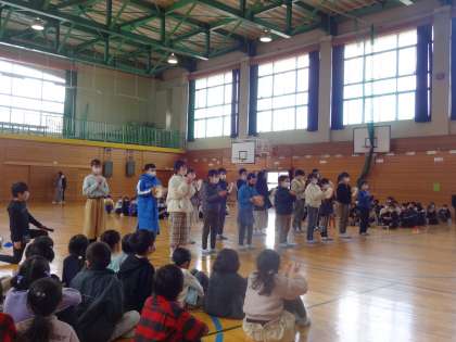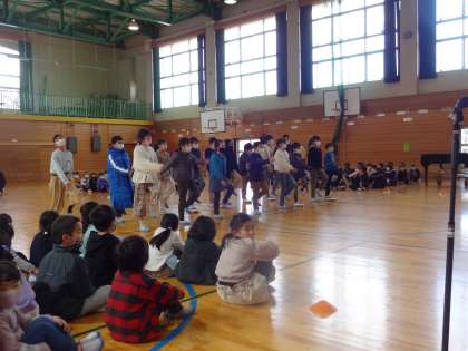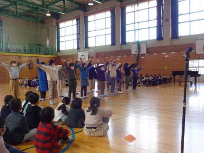 4年生は、中学校へ進学する6年生へ、息の合った動作と覇気のある声で、力強くエールを送りました。