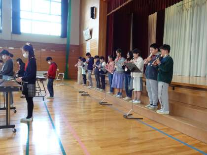 また、6年生は、在校生へのお礼として、サプライズで、「コンドルは飛んでいく」を合奏しました。
