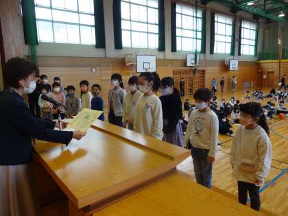児童会引き継ぎ式の後、受賞紹介を行いました。