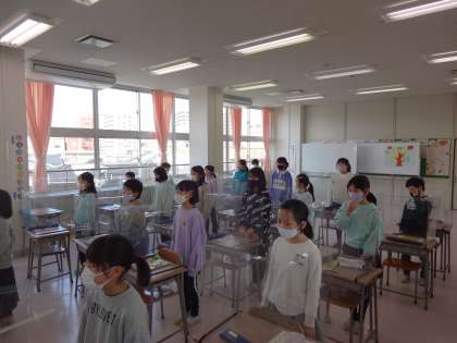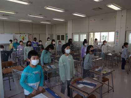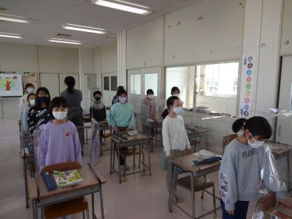 リコーダー演奏を終えた後、卒業式で歌う「smile again」を合唱しました。