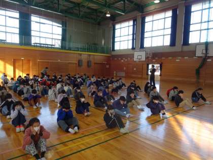 さわやか集会は、音楽専科の先生の指導の下、校歌と「smile again」の合唱練習をしました。