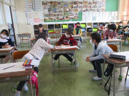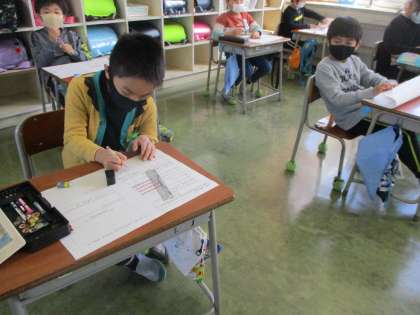 学級活動の時間に、2年生になってからの1年間を、キャリアパスポートで振り返りをしました。