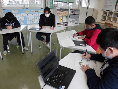 6年生は、国際教室での学習が最後となりました。今日は、6年間の総まとめ問題に取り組みました。また、クロムブックを使って国際アンケートにも答えました。