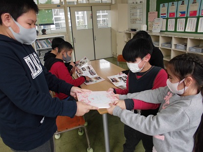 国際教室のみんなで作ったメッセージカードを6年生に渡しました。みんなからの心のこもった言葉を見て、6年生はとてもうれしそうでした。