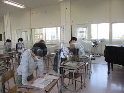 1年間学習したことを振り返るために、学習してきた歌のイントロクイズ大会をしました。歌が流れ始めると、分かった人からその歌のページを開き、立って歌いました。1学期に学習した歌も完璧に覚えていました。