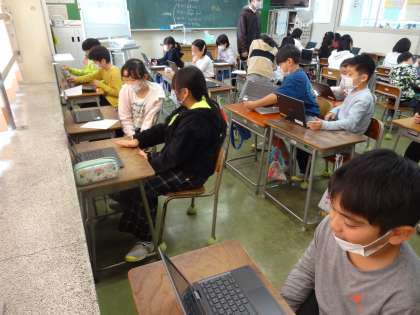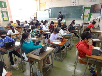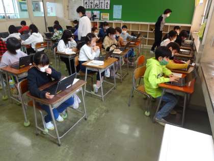 ログインを終えた後、カメラ機能、QRコードを読み取り動画視聴、グーグルミート、プログラミング等を行い、子供たちが操作できることを増やしています。