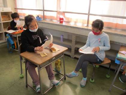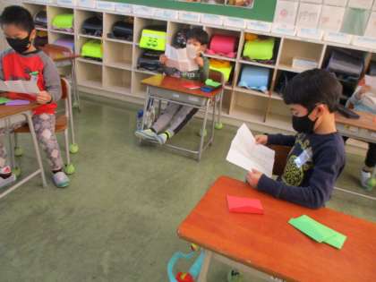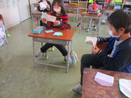 「すてきなところを伝えよう」の学習で、子供たちは友達にすてきなところを手紙に書いて渡しました。それを読んで今日は手紙で返事を書きました。