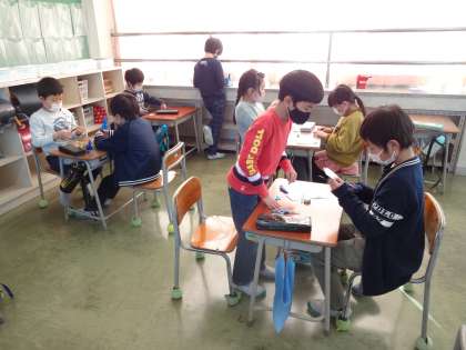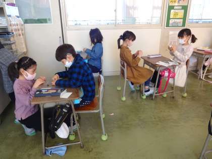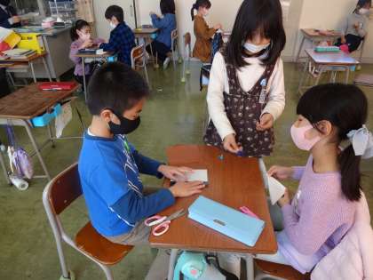 明日、2年生教室では、「思い出集会」を開きます。そのときにプレゼントするものを作っています。