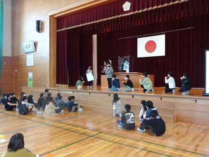 5年生は、寸劇をした後、アーチを作って校長先生をステージ上へご案内しました。