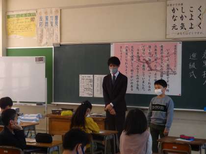 進級し、最上級生になった子供たちのために「進級式」を開きました。