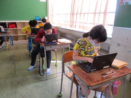 クロームブックのGoogleEarthを使って、行ってみたい国を検索したり、知っている地名を検索したりしました。ストリートビューの機能を使って散歩した気分になりました。