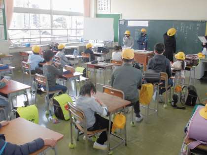 終了後、交通安全に気を付けて町内別に集団下校しました。