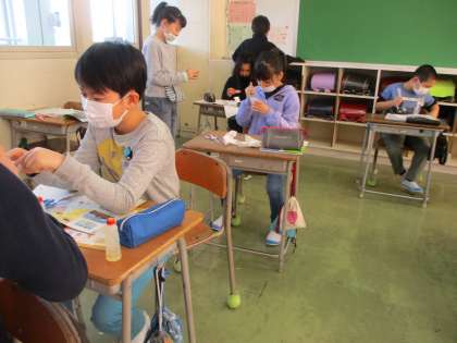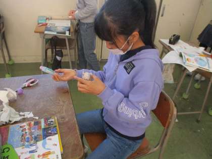 卓球ボールを使って、地球儀を作りました。海洋名、大陸名を覚えながら、位置関係も把握していくために活用していきます。
