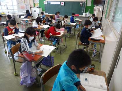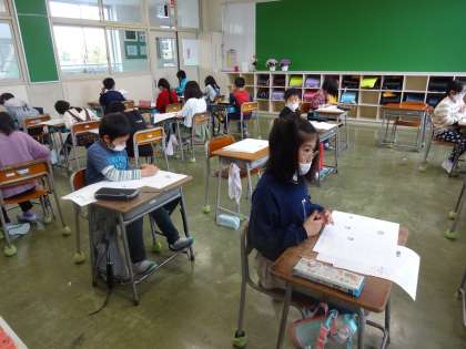 3年生は、2限に算数科の学力調査をしました。2年生の学習を思い出しながら、一生懸命に考えました。