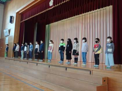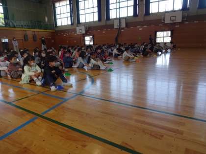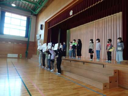 午前8時25分より、体育館で「あおやぎ児童会発足式」を行いました。