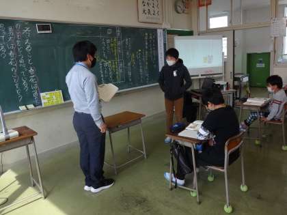 物語文の登場人物「春花」と「勇太」の関係を読み取るために、2人の気持ちを考えてノートにまとめました。また、音読と寸劇も取り入れながら気持ちを想像しました。
