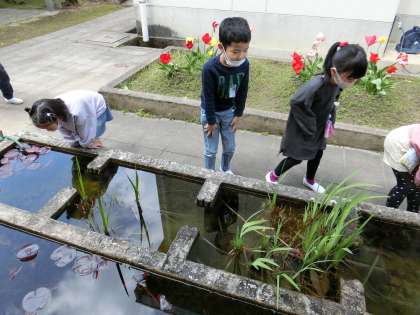 子供たちは、メダカやおたまじゃくしを見つけて喜びの声を上げました。