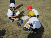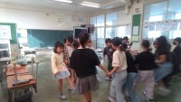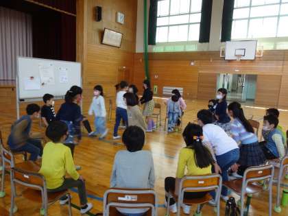 お楽しみ会で、フルーツバスケットを楽しむ子供たち。集会係が企画・運営しています。