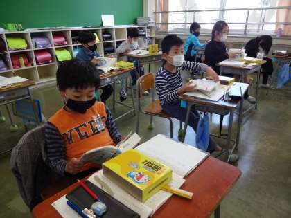 意味を知っている子供がいないので、国語辞典を使って調べました。先日、学校司書の先生に教わった、国語辞典の使い方を思い出しながら探し、見付けることができました。