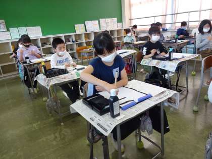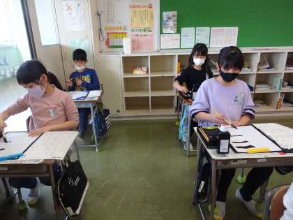 学習課題は、点画の種類を確かめ、筆圧などに注意して書こうです。