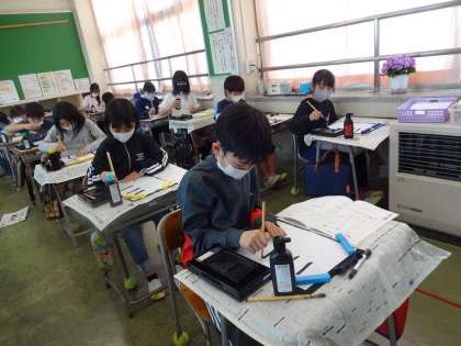「トン、スー、トン」をキーワードに、筆づかいを学びました。